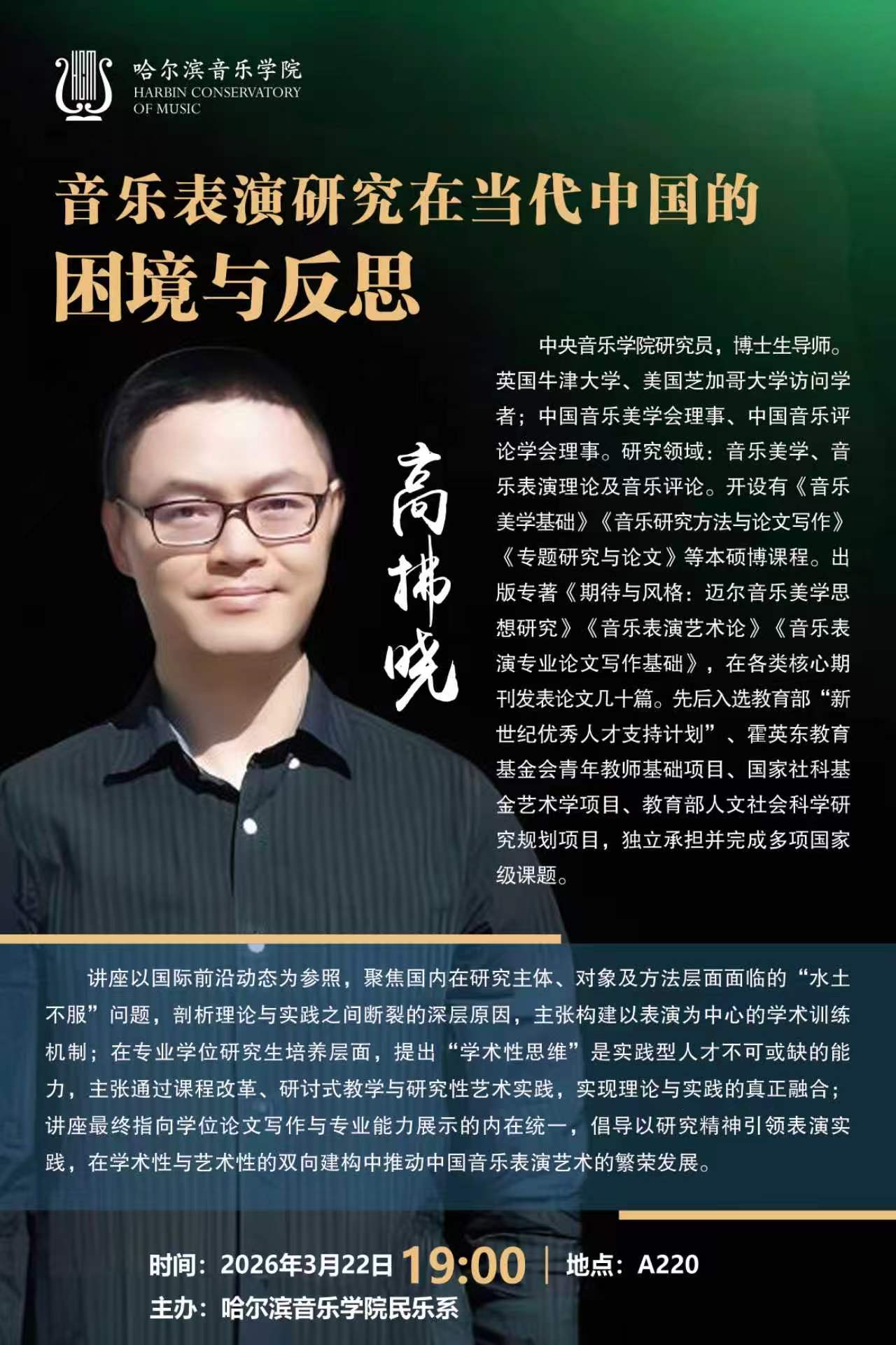 哈尔滨音乐学院民族声乐系负责民族声乐系的教学、科研、艺术实践、创作、学科建设和行政管理工作。负责制定并实施民族声乐系的发展规划和工作计划。负责制定本科和研究生的人才培养方案、教学大纲和教学计划。负责组织和安排民族声乐系的本科和研究生教学、专业建设、教学研究、科学研究活动。负责组织和安排民族声乐系的艺术实践活动。负责民族声乐系的师资队伍建设工作,做好专业教师的培养、考核工作及教师职称评定的推荐工作。
